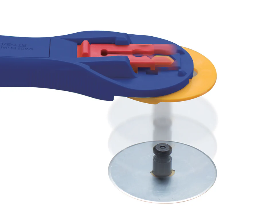 - Compatible with the OLFA 45mm Standard and Endurance ™ Rotary Blades, this tool is sure to upgrade your experience working with a variety of textiles. Tackle anything from cotton to paper or leather with confidence and safety. The blade guard extends to cover the sharp edge when the cutter is not in use. Rotary blade changes are easy and fast with the Quick-Change system, allowing the blade to be swapped out at the push of a lever. Lock the new OLFA blade in place in a flash, and continue cutting.