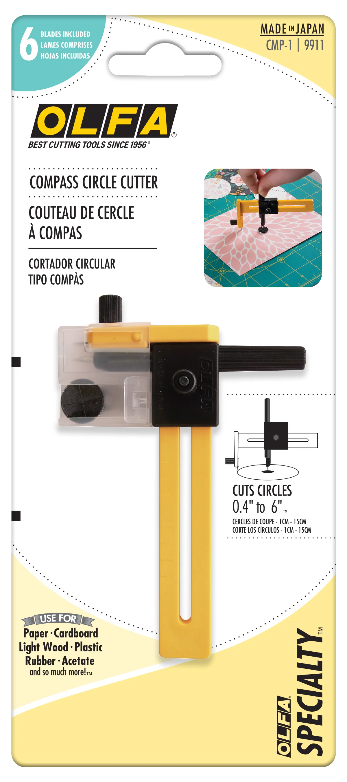 When you're making a circular craft project, you need the perfect circle cutter. Thankfully, there's an OLFA cutter waiting for you: the OLFA CMP-1 Compass Circle Cutter. Use this compass cutter to create circles out of films, cardboard, light wood or paper with the precision of a top-quality art knife.